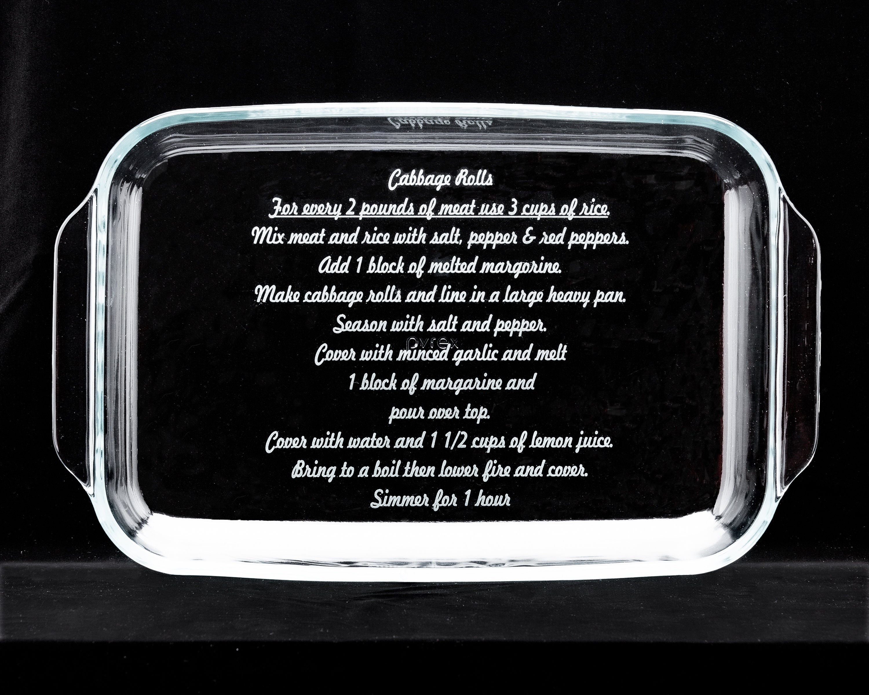 13x9 or 8x8 Casserole Dish with your favorite recipe engraved on it.