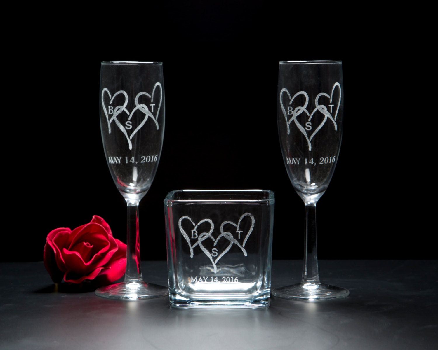 Triple Heart Champagne flutes.